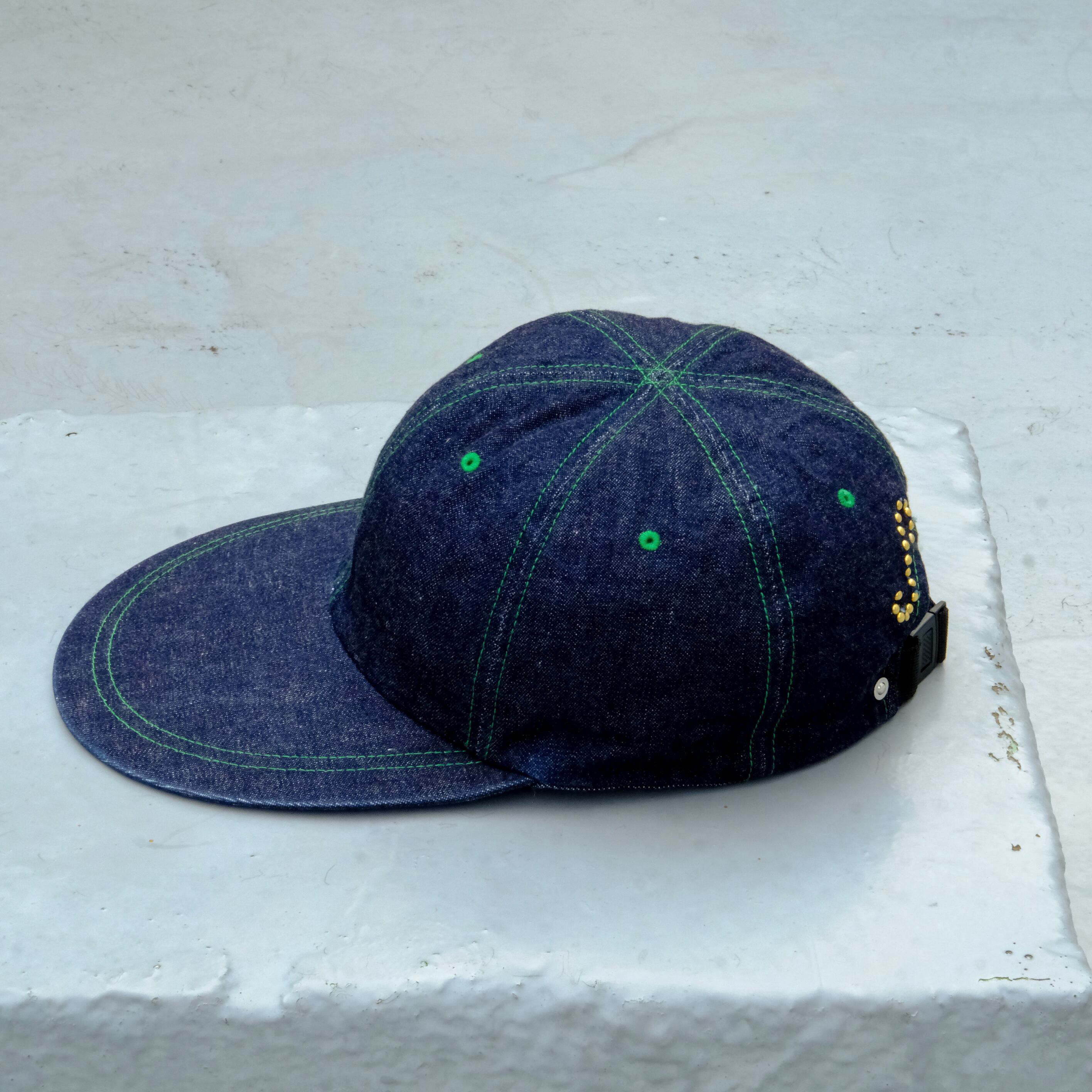 4パネルのロングビルは主流ですが、デニムの6パネルはまず見ないので、今回形と素材に重きを置き製作。FAFROCKYの成島氏とのご協力で創作。